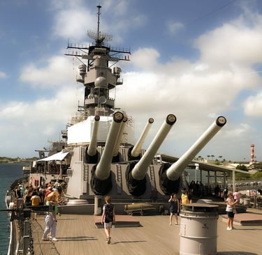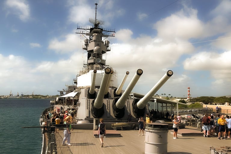 Board Battleship Missouri Memorial with a guided tour at Ford Island.